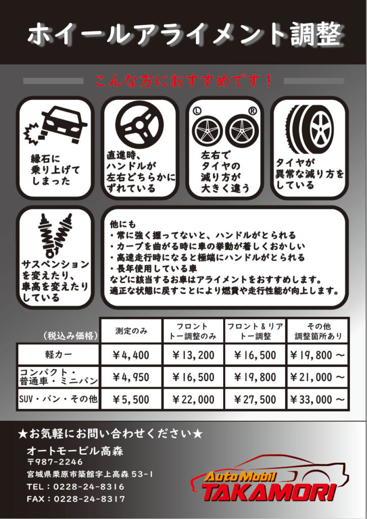 アライメント料金表